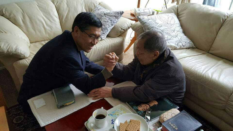 목사님께서 유창호 성도 부모님 (유운영 집사님, 이광복 집사님) 심방중 왕년에 유도 선수였던 유운영 집사님과 팔씨름으로 한판 겨누기를 하셨는데 막상 막하 였다는 소식을 생중계해 드립니다.